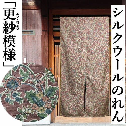 のれん シルクウール 更紗模様 ブラウン のれん ロング丈 絹 毛 ナイロ…